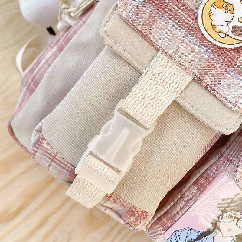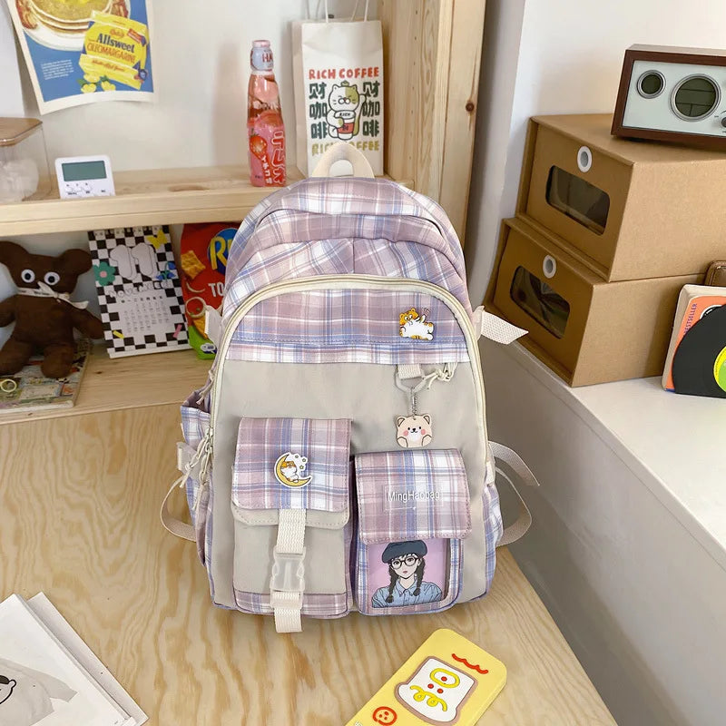 Harajuku Backpack for Teenager Large Capacity Lattice Backpack