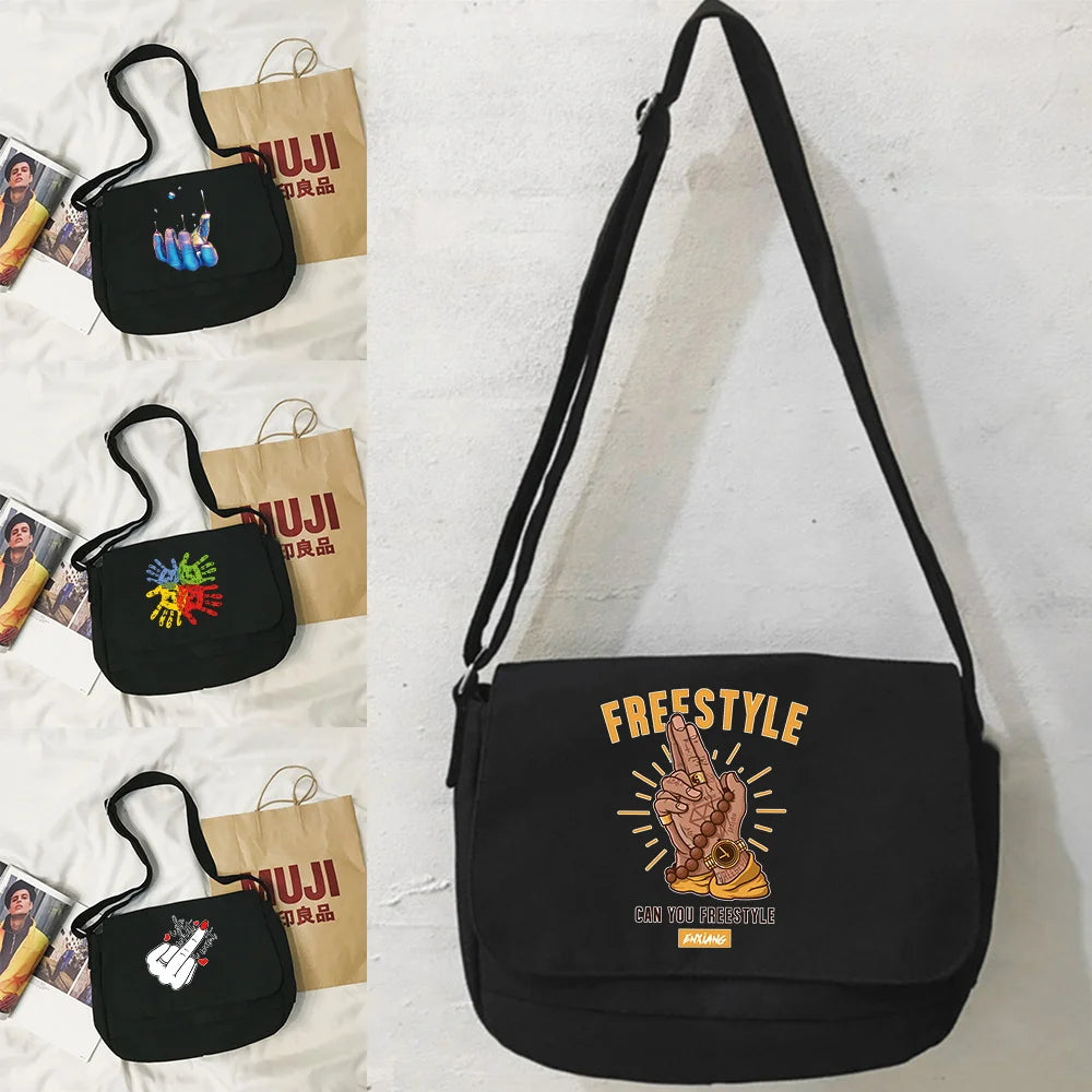 Harajuku Style Student Messenger Bag with Hand Pattern