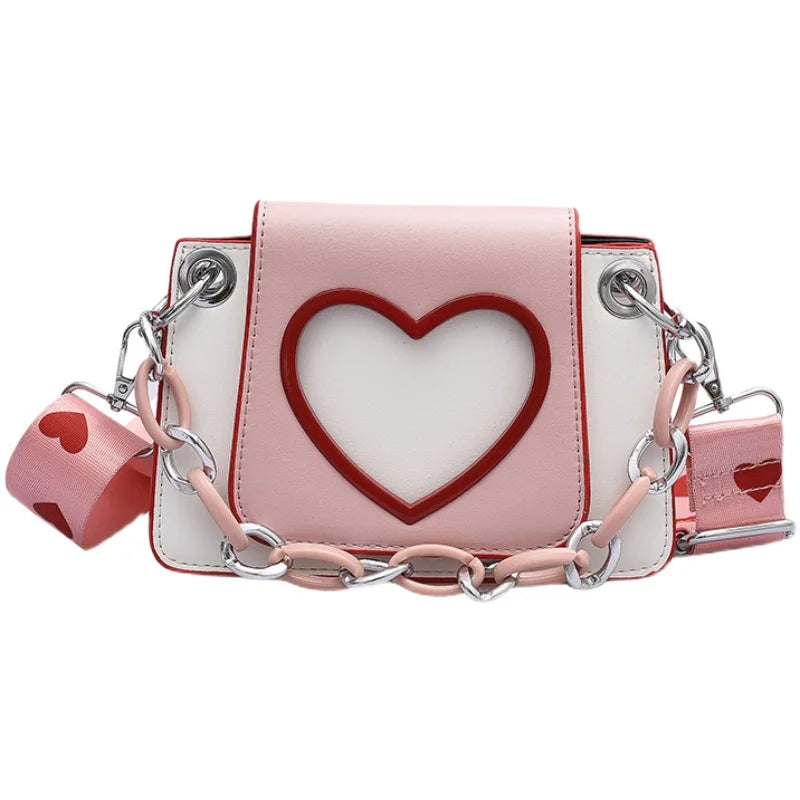 Heart Wide Shoulder Strap One Shoulder Bag For Girls Chain Hangbags