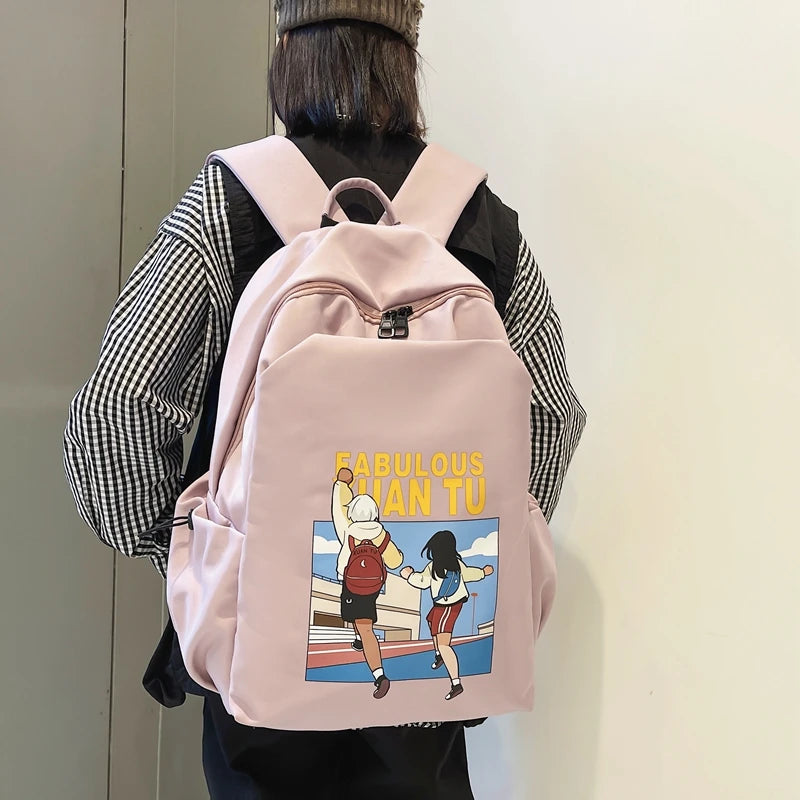 High School Backpack Casual Backpacks Female Nylon Print Backpack
