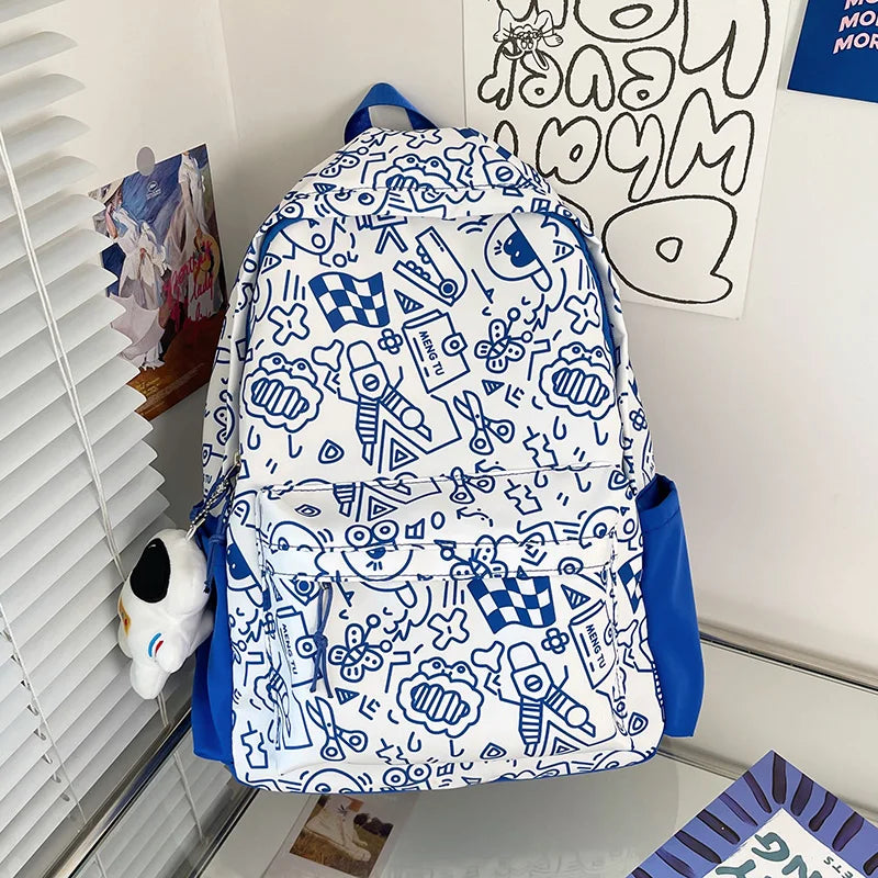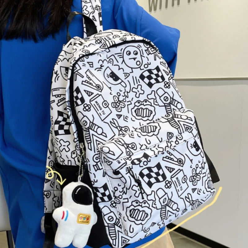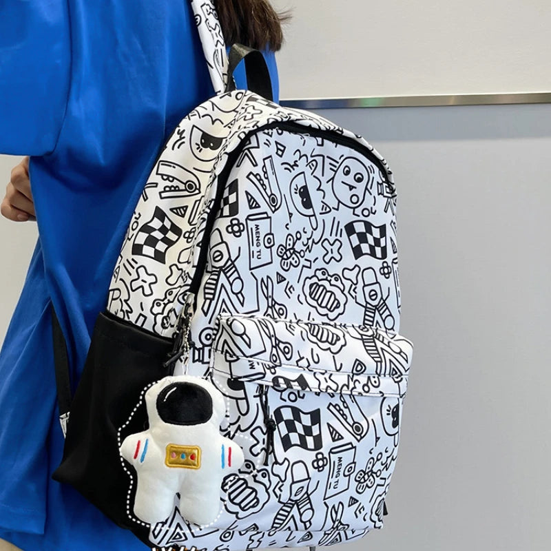 This high school schoolbag features a trendy graffiti print design and offers a spacious capacity for all your essentials. Perfect for high school pupils.