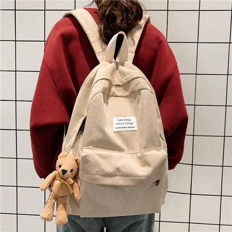 This corduroy backpack is perfect for high school students, featuring a large capacity and all-match style.
