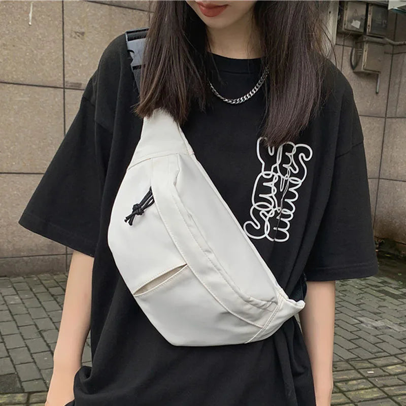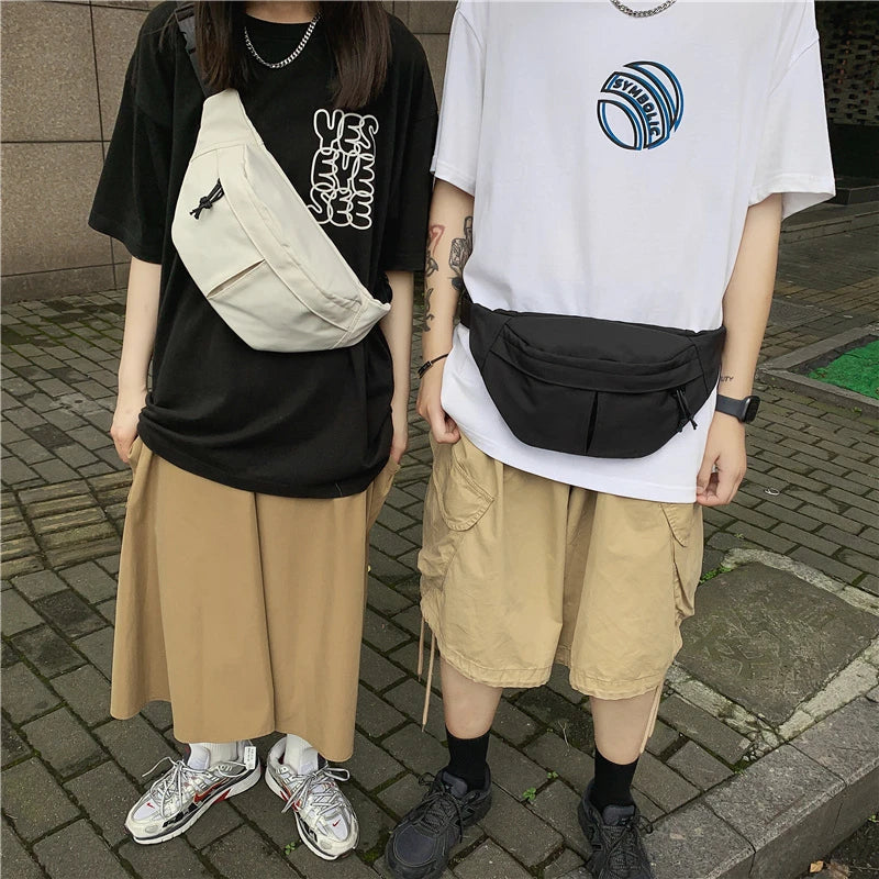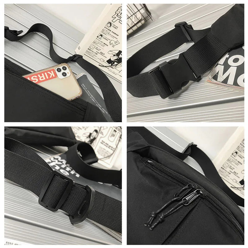 Stay trendy and organized with this street hip-hop style belt bag that can be worn as a chest pack, waist bag, or shoulder bag. Made of durable nylon, it's perfect for outdoor sports and activities.