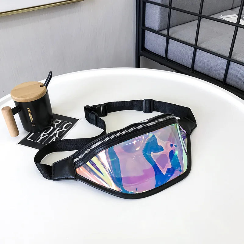 Stay stylish and organized with this holographic waist bag. Made of PVC material, it's perfect for sports, travel, and daily use.