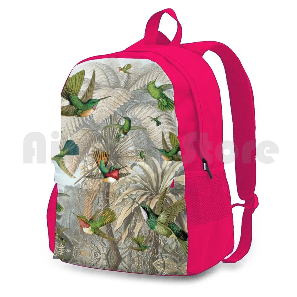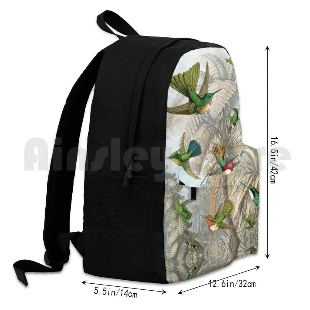 Hummingbirds Outdoor Hiking Backpack Tropical Palm Leaves Green