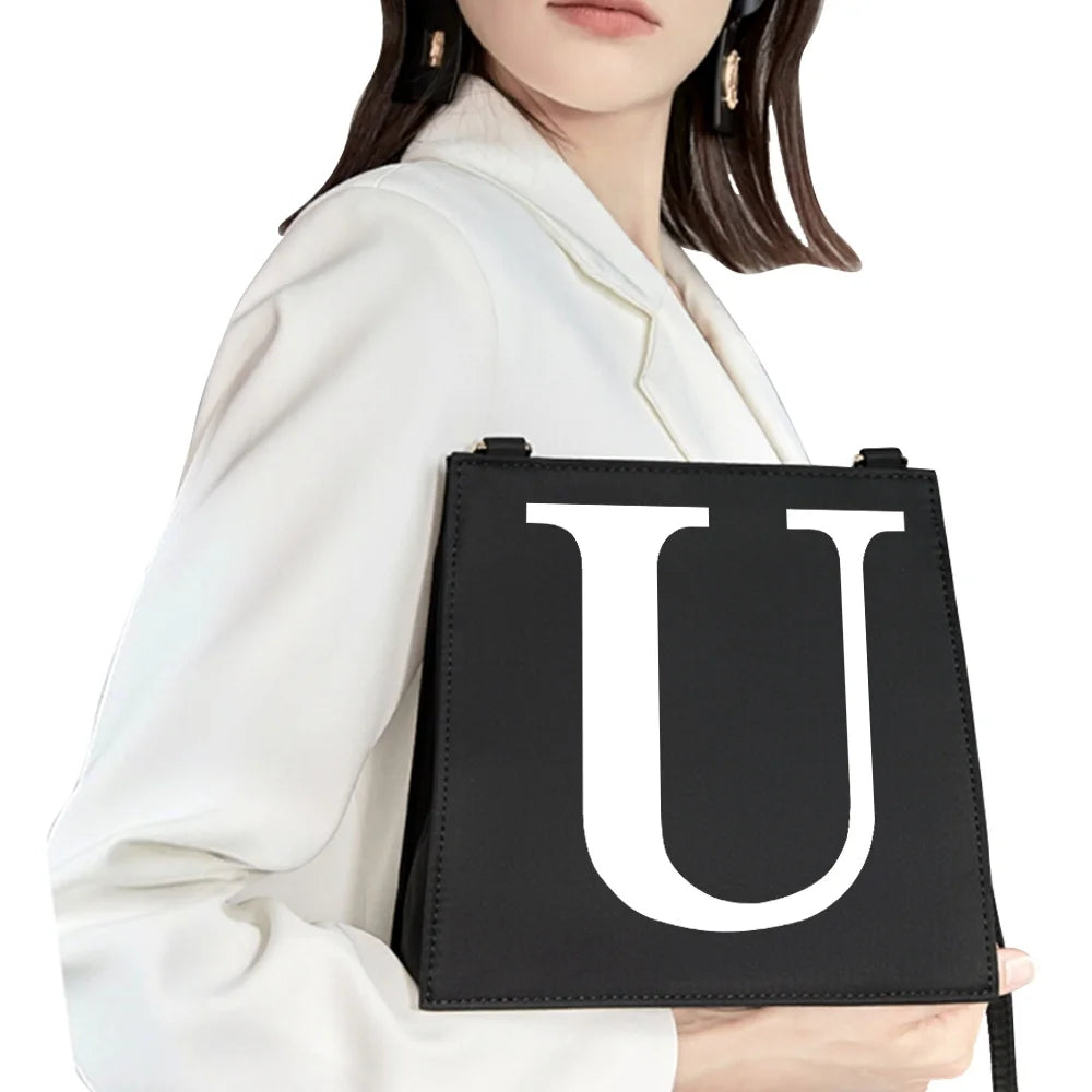 This stylish bag features a square shape with an initial name letter pattern printing, perfect for everyday use or special occasions.