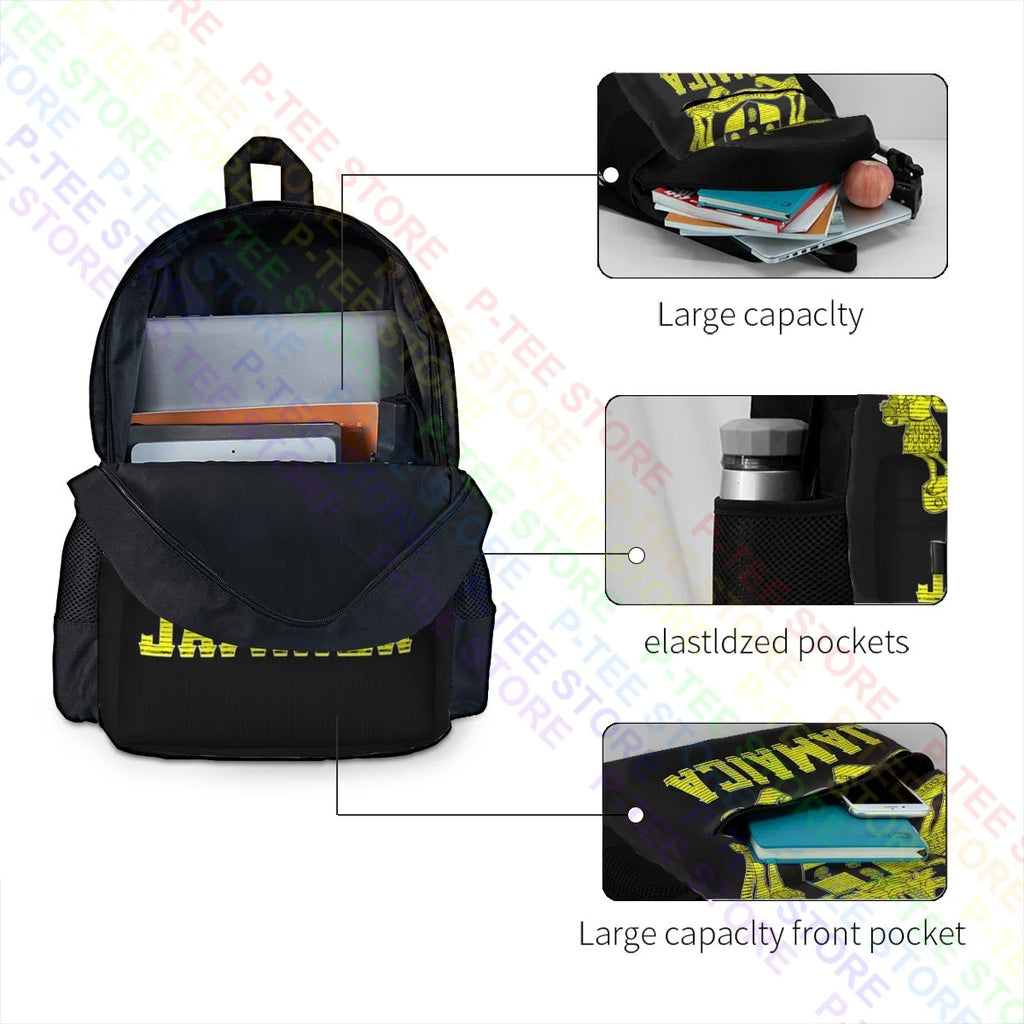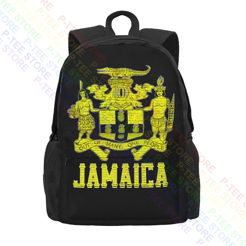 - Large capacity backpack with Jamaican Coat of Arms