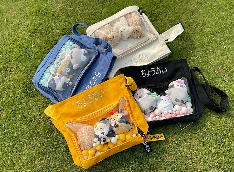 This Japan-themed Ita Bag is a stylish crossbody mini purse with a removable clear decorative bag layer, perfect for teens.