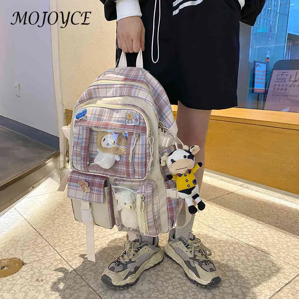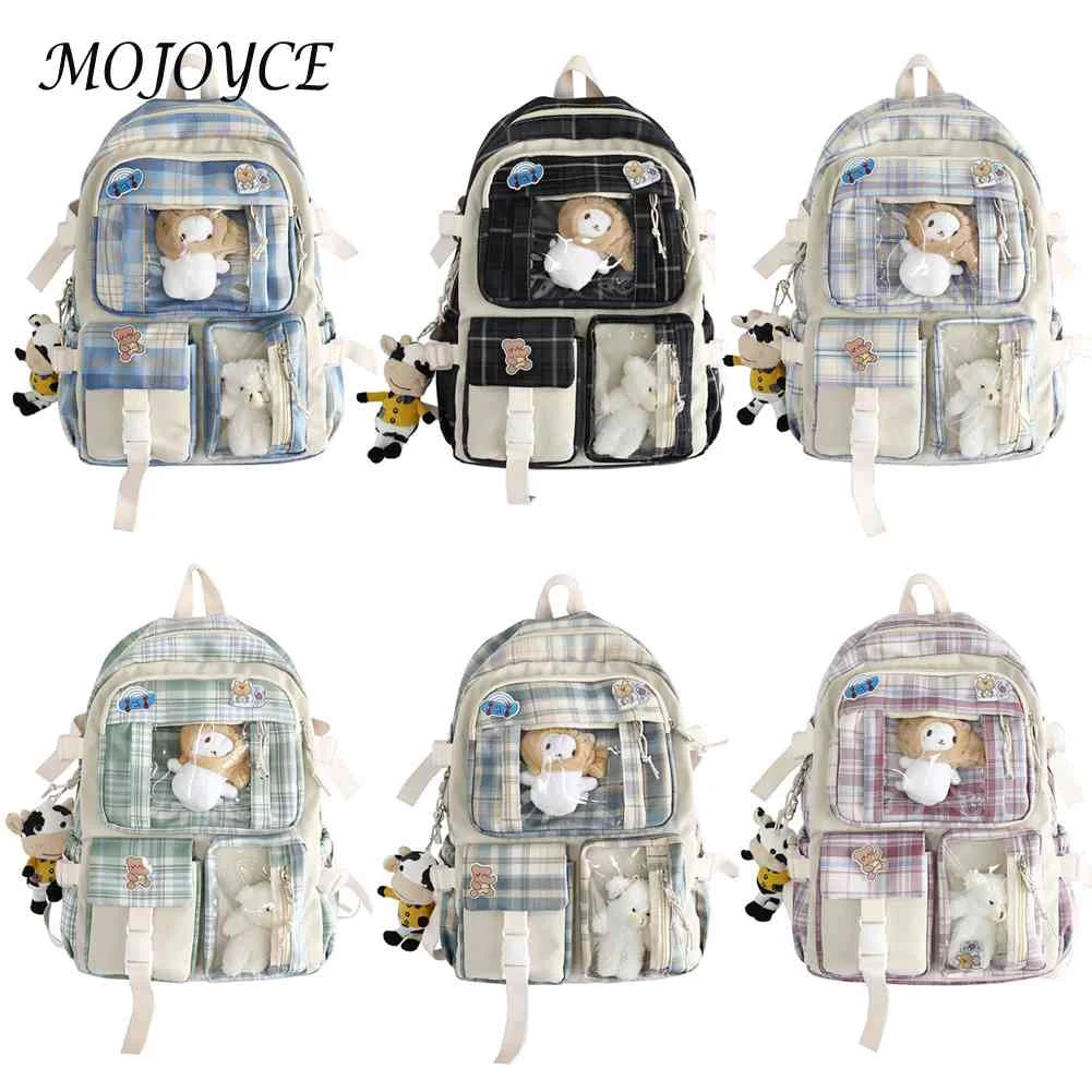 Japanese Canvas Backpack Plaid School Bag Student Travel Backpacks