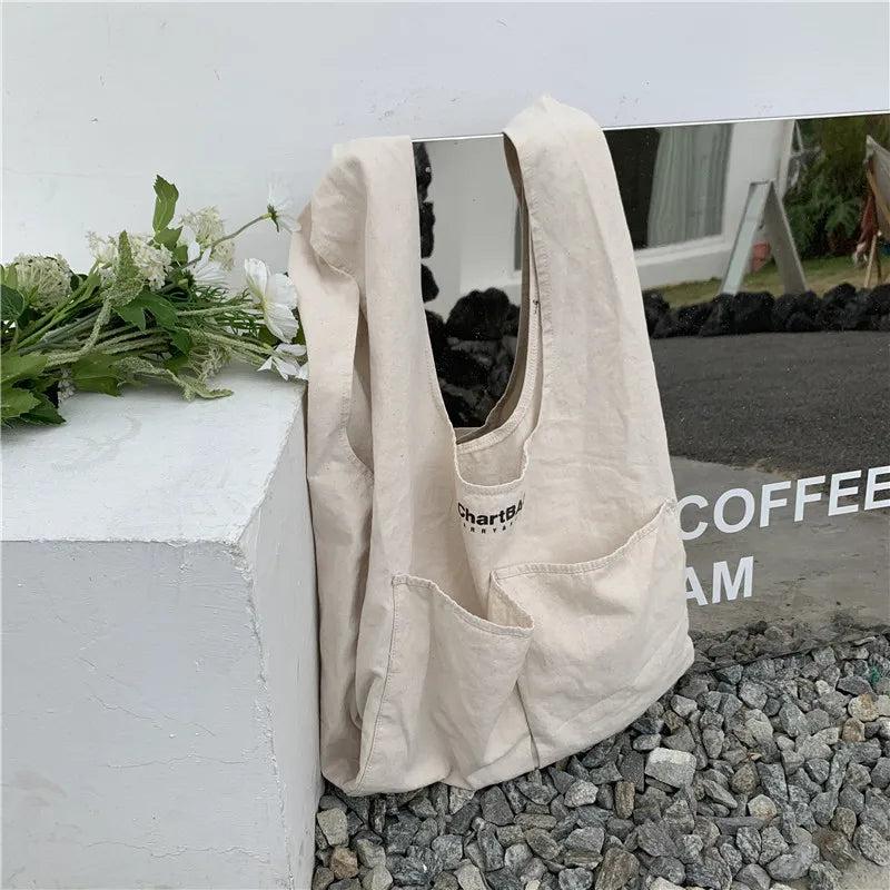 Japanese Canvas Shoulder Bag Letter Printing Shopping Bag