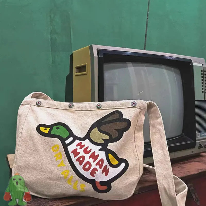 Japanese Duck Shoulder Messenger Bag Retro Canvas Tote Couple Casual Bags