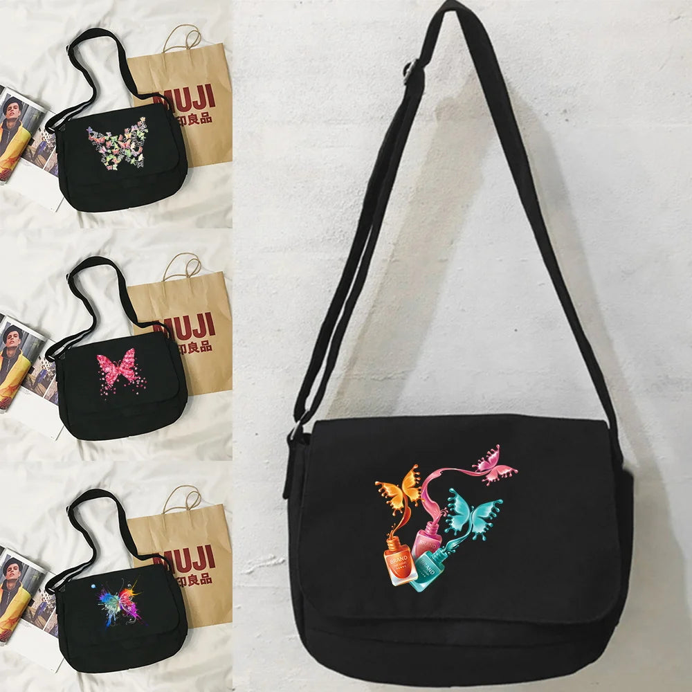 This multi-functional messenger bag features a trendy Harajuku college style with a portable one-shoulder design. The bag is adorned with a beautiful butterfly pattern.