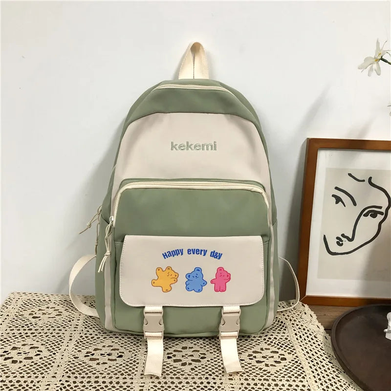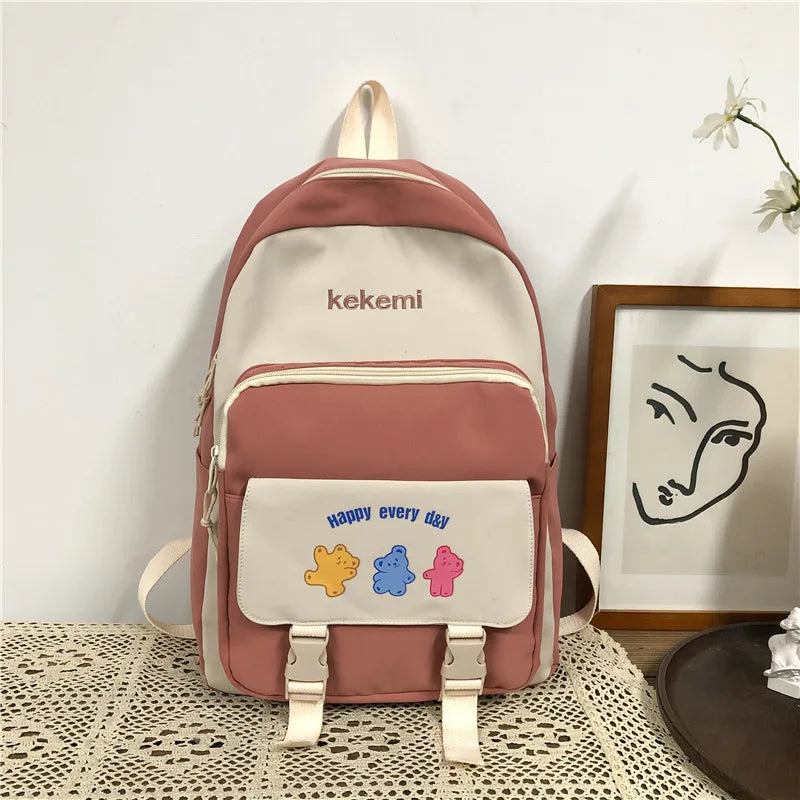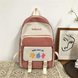 This Japanese-style backpack is made of durable nylon material, featuring solid and cartoon printing designs. It is perfect for school girls, with waterproof properties to keep belongings safe.