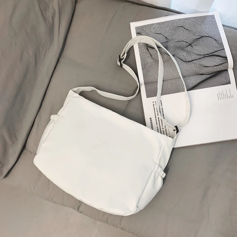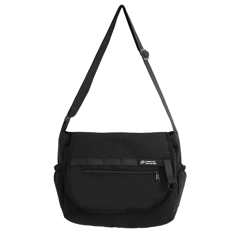 This unisex messenger bag combines Japanese and Korean style with a waterproof nylon material. It offers a large capacity for all your essentials.