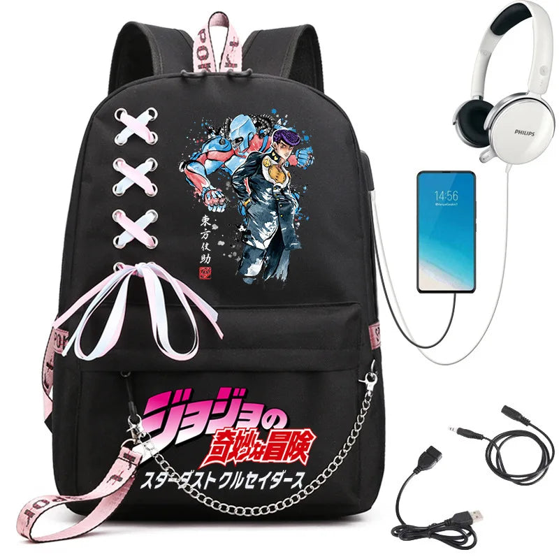 JOJO's Bizarre Adventure Anime USB Backpack School Book Bags