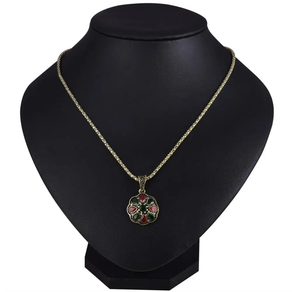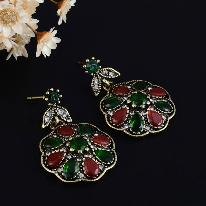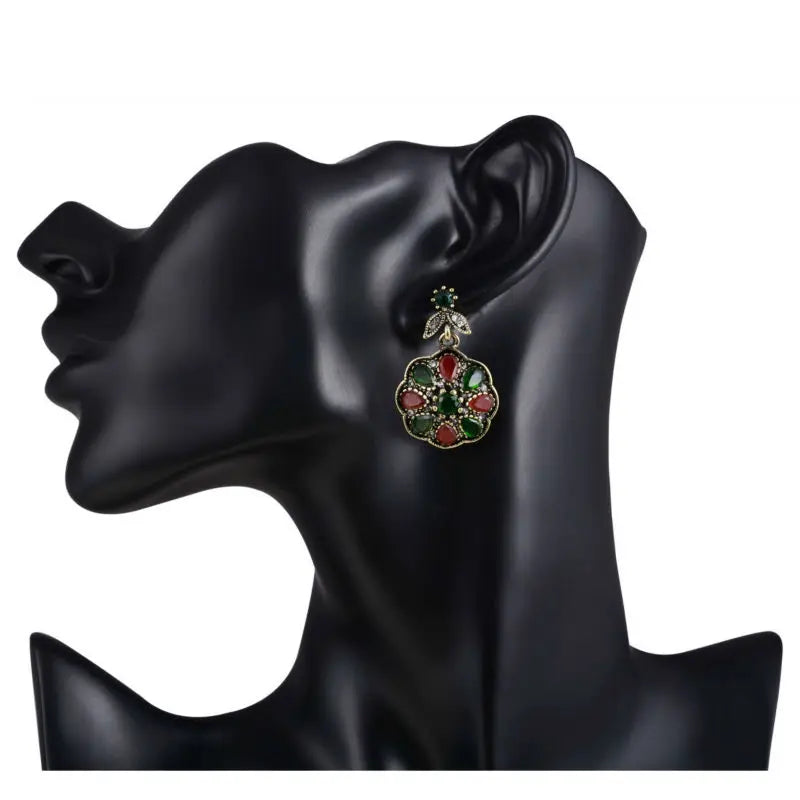 Description:Add a touch of elegance to your outfit with these special druzy pendants and gold long clip earrings. Made with natural acrylic in an antique bronze finish, these accessories are perfect for a party or special occasion.Features: Special druzy pendants and gold long clip earrings Flower design with natural acrylic...