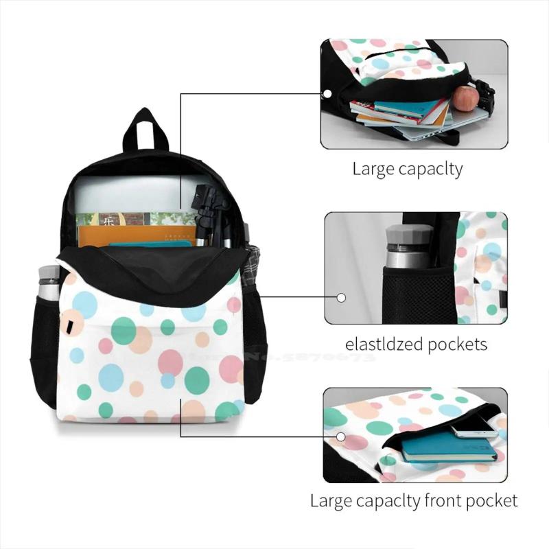 Jubijay Bubbles 3D Print Backpack Pastel Pink Green Peach Polka