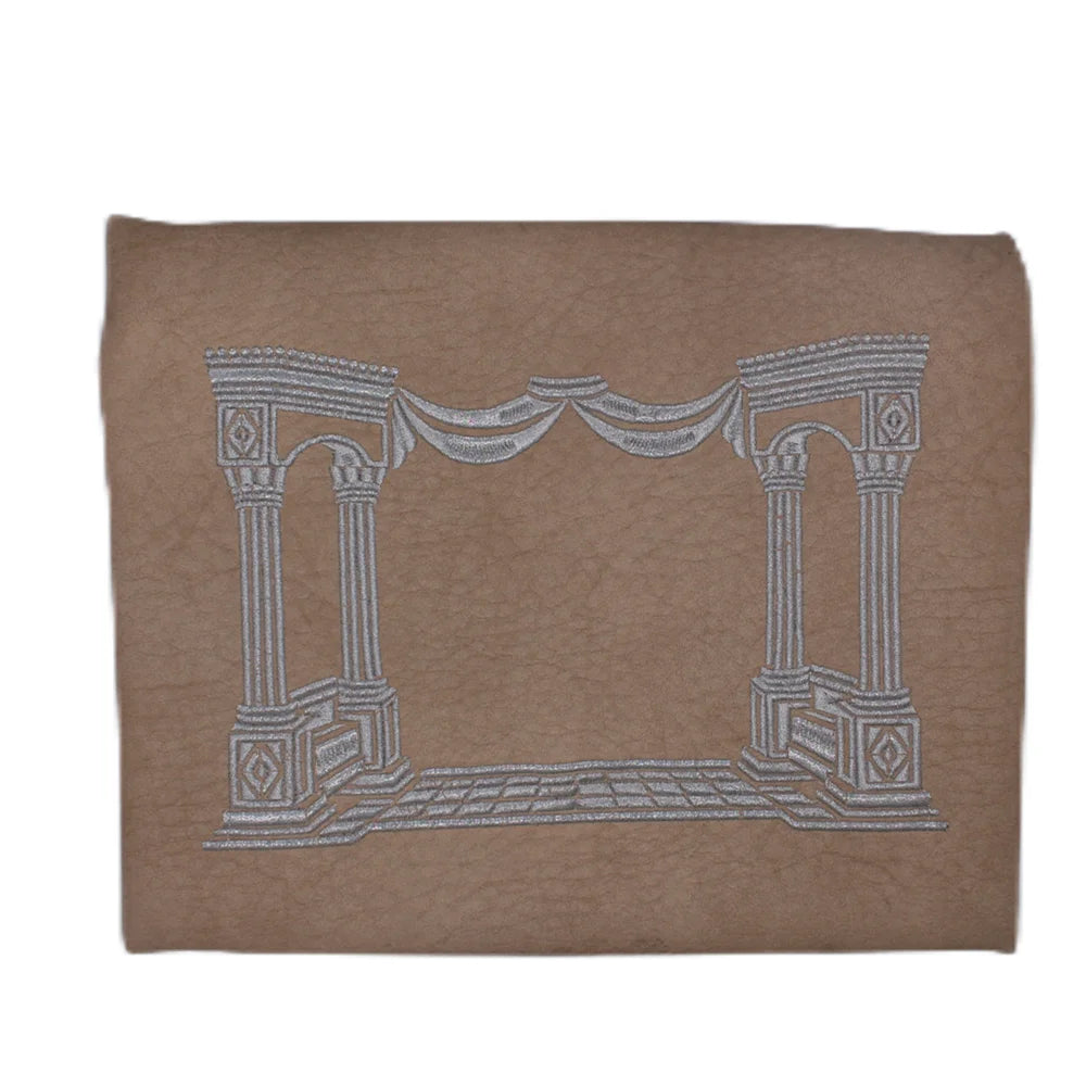 This zippered tallit bag is perfect for storing your prayer shawl and tefillin. The leather cover is intricately embroidered with Judaica designs.