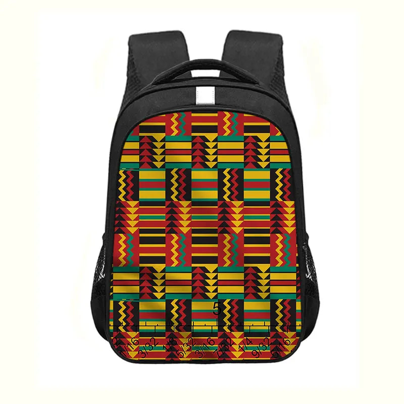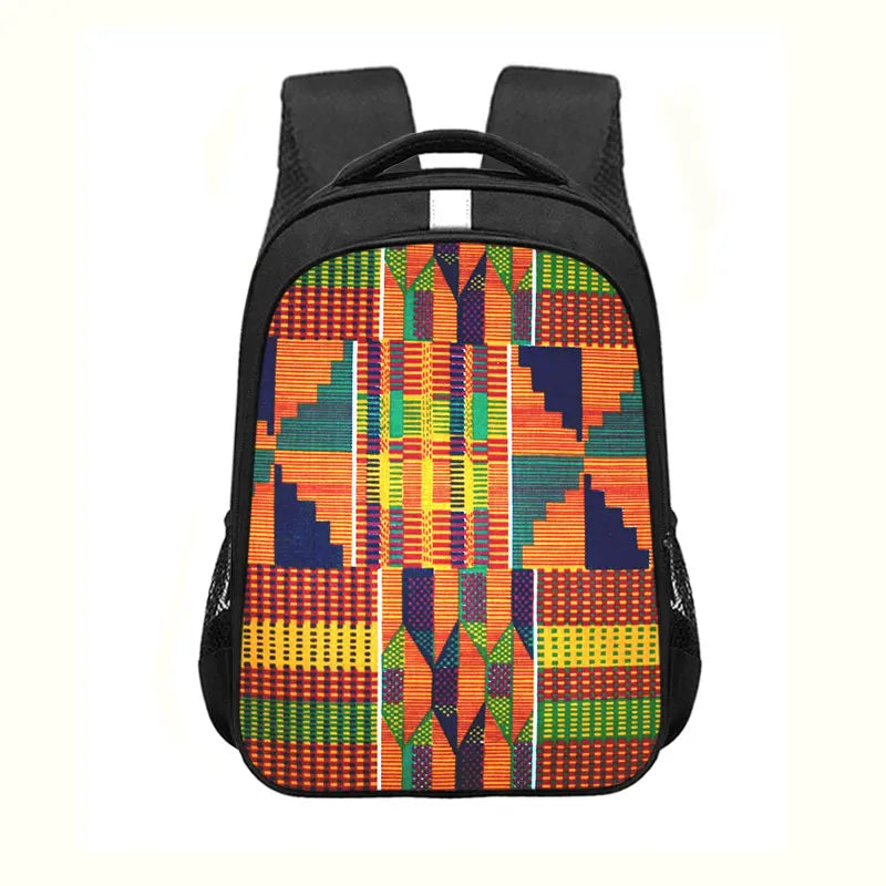 This children's school bag features a vibrant Afro woman design, perfect for teenagers. It is a sturdy and spacious backpack for carrying books and supplies.