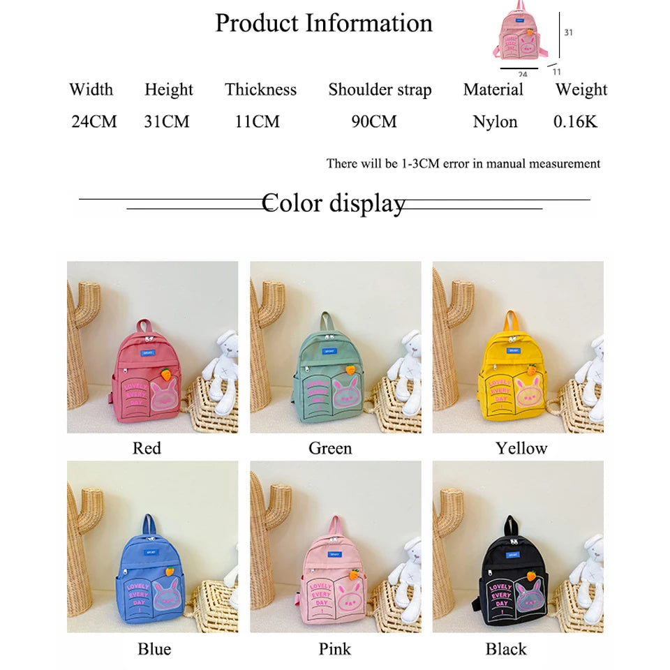 This adorable backpack is perfect for kindergarten students. It features a cute cartoon design and is ideal for carrying books and school supplies.