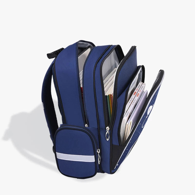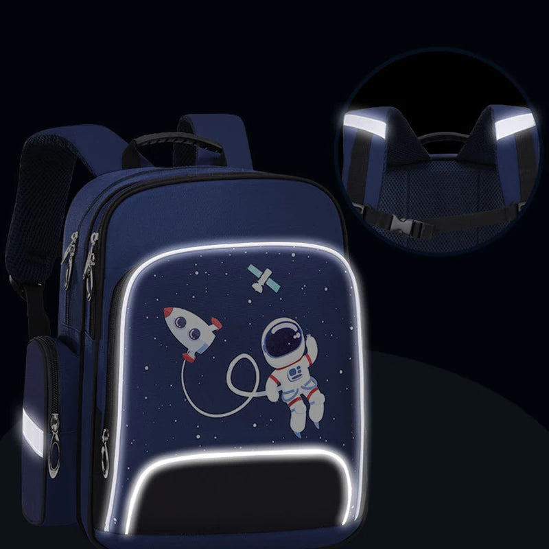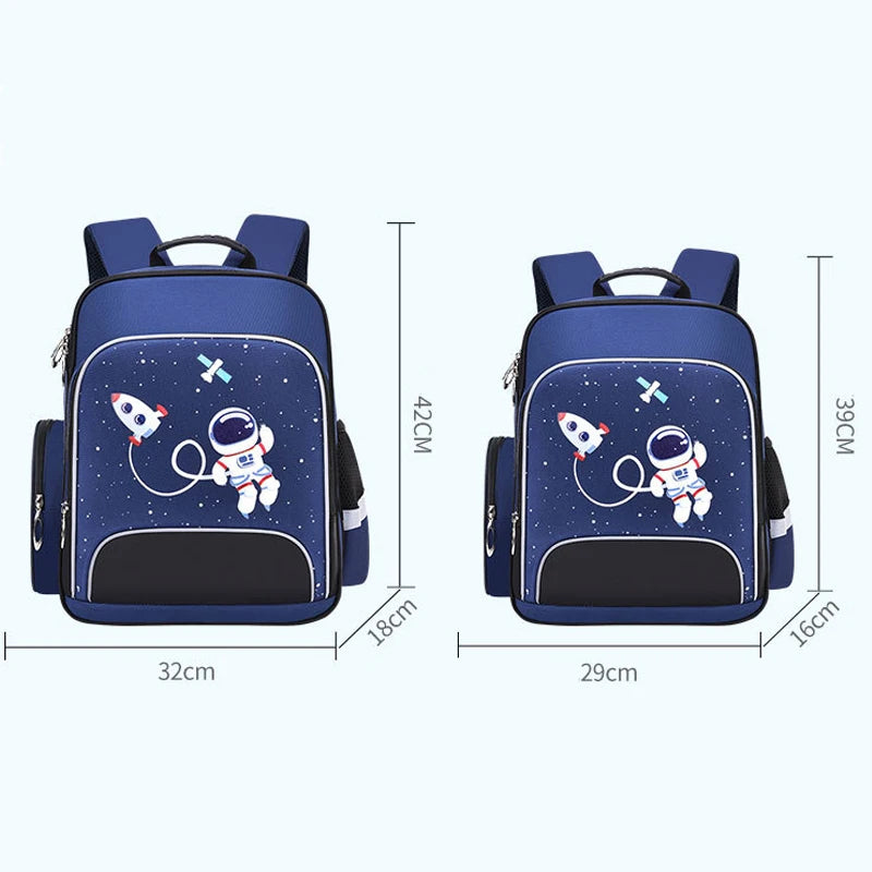 This school backpack is designed for children aged 6-12 years old, made of durable nylon material with a cute cartoon design. It has a large capacity to store books, stationery, and other school essentials.