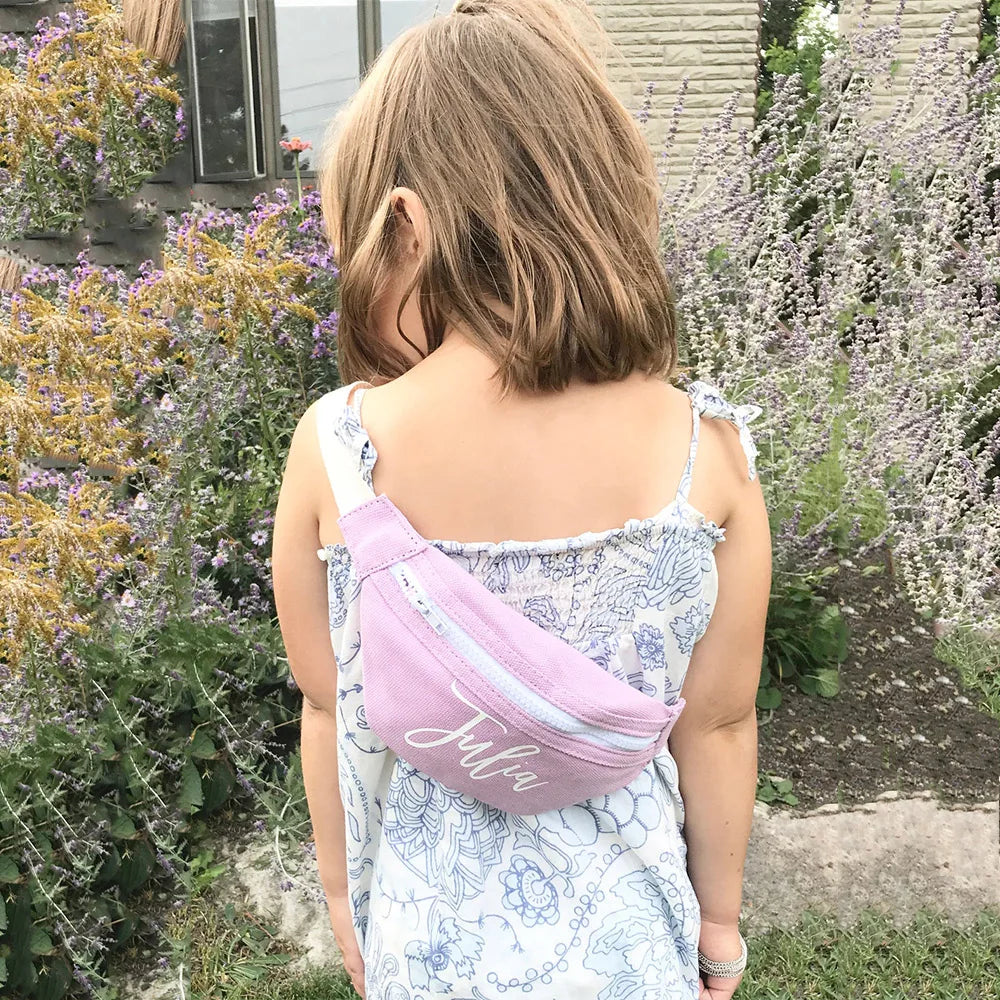 This children's fanny pack is perfect for keeping toys and other small items close by. The adjustable strap allows for wearing as a waist bag, hip sack, or shoulder bag. A great personalized gift for your child.