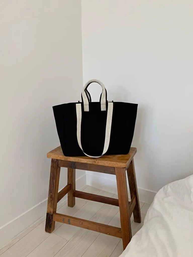This high-capacity tote bag is crafted from soft canvas material, featuring a solid color design with a hasp closure. Perfect for preppy style girls, it is a versatile and all-match accessory.