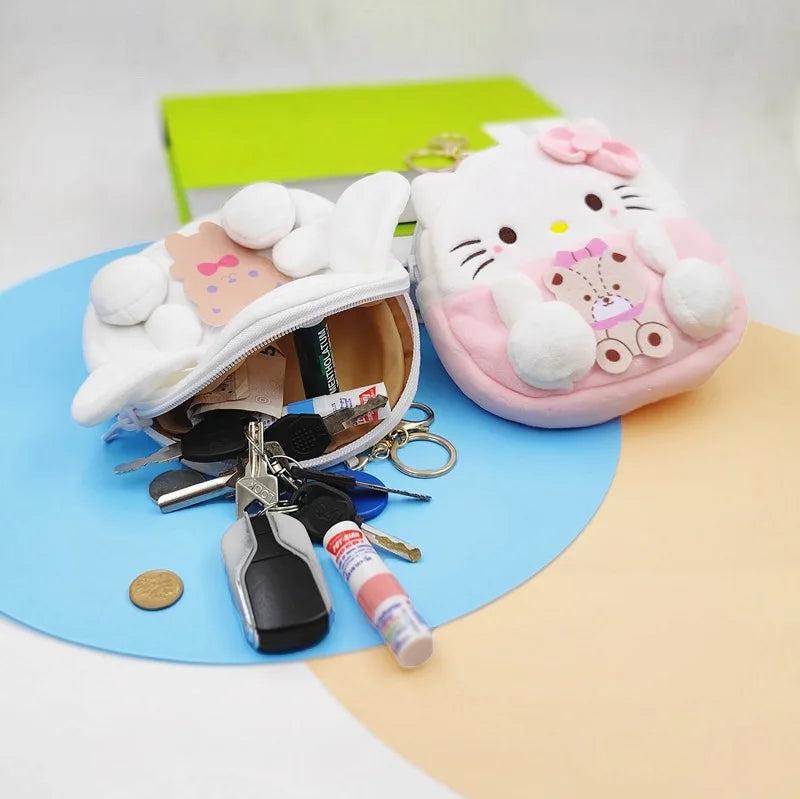 Kuromi Cinnamon My Melody Plush Wallet Coin Purse Keychain