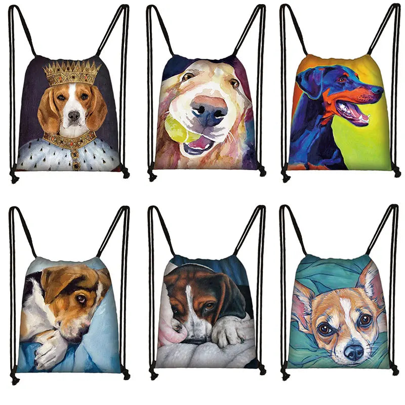 Lab/Golden Retr/Fadou Cartoon Dog Print Drawstring Bag Travel Storage
