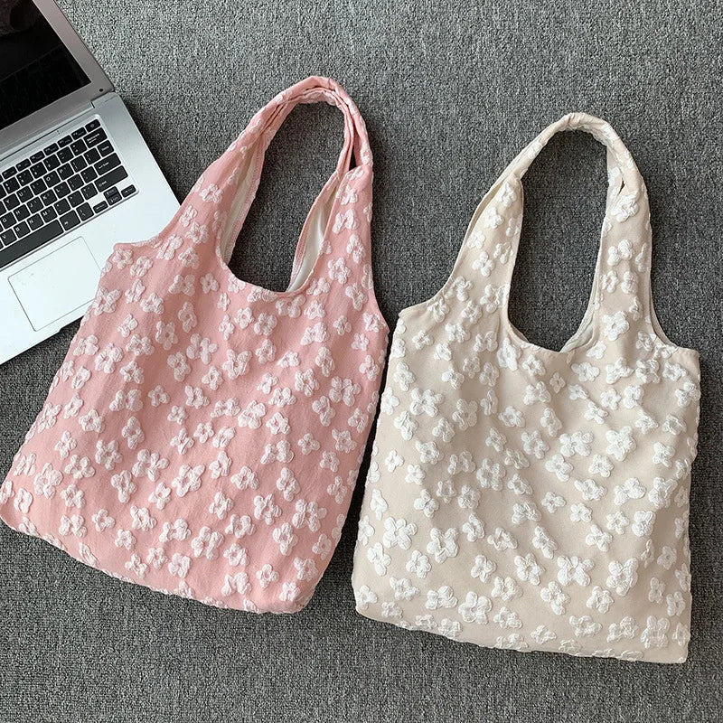 This elegant lace canvas tote bag is perfect for shopping and everyday use. Its fairy flower lace design adds a touch of charm to your outfit.