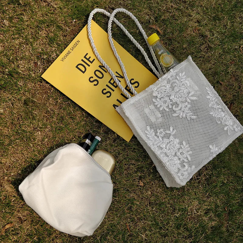 Lace Embroidery Shoulder Bag Female Large Capacity Handbag Lady Handle Bag