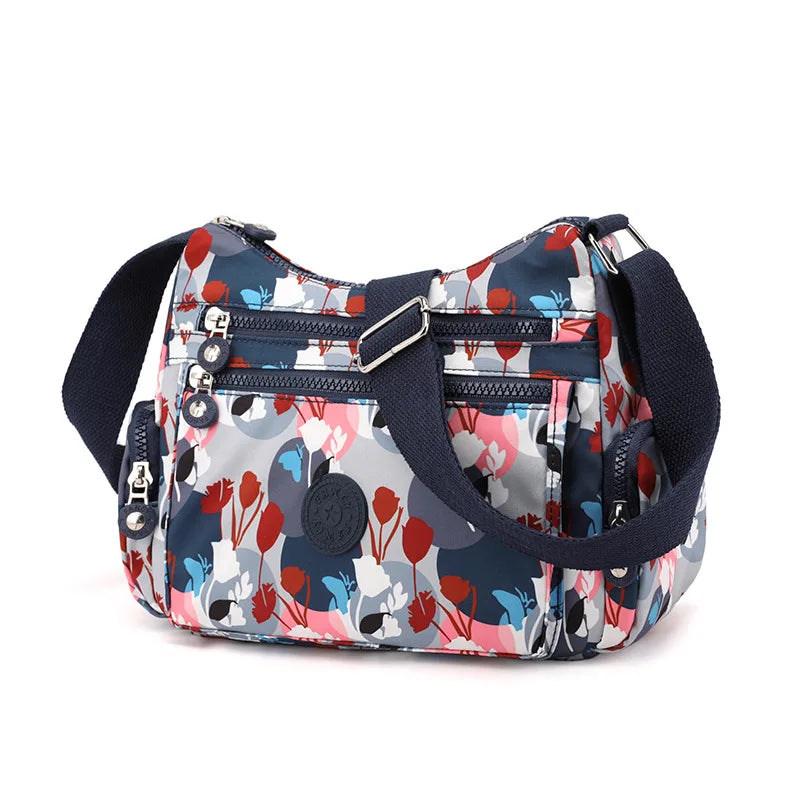 This lightweight canvas messenger bag is perfect for girls who need a casual tote bag with ample capacity. It features multiple layers and is made of durable nylon.