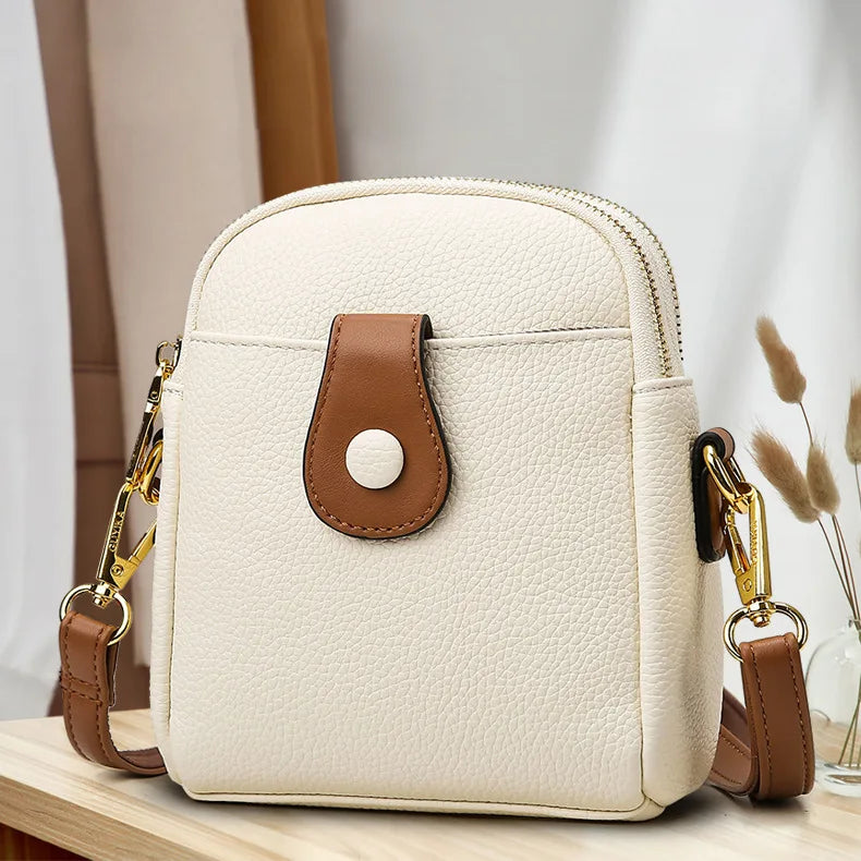 This stylish bag features a soft surface texture with a lychee pattern, perfect for carrying your essentials. It can also be used as a mobile phone bag.