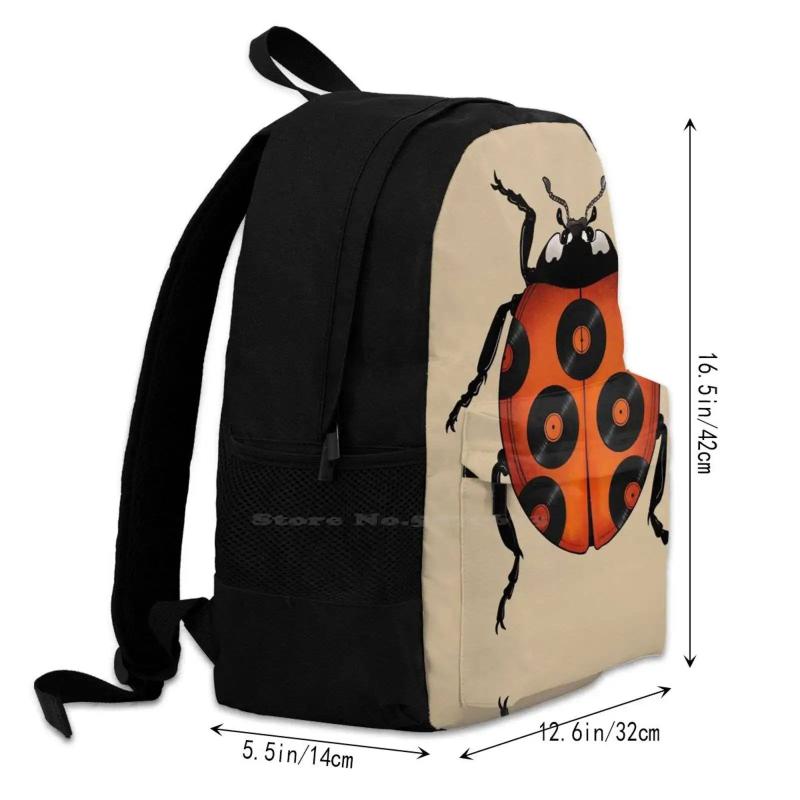 Get ready to rock with this ladybug vinyl backpack featuring a cool insect design inspired by music lyrics.