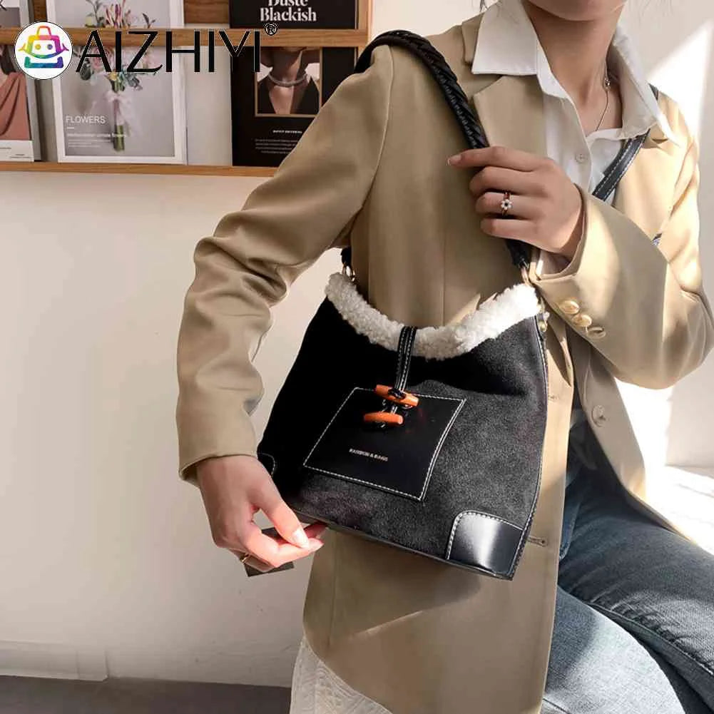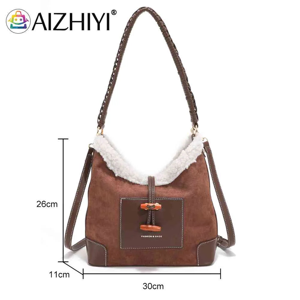 Lamb Wool Messenger Bag Vintage Faux Fur Tote Soft Casual