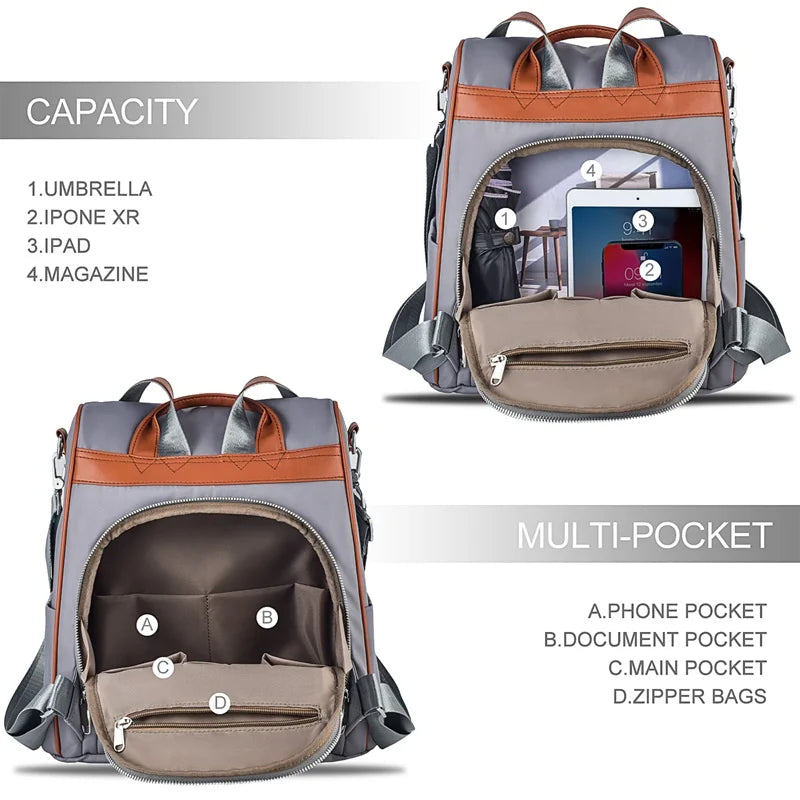 Stay organized and secure with this multifunctional backpack made of waterproof fabric. Ideal for both males and females.