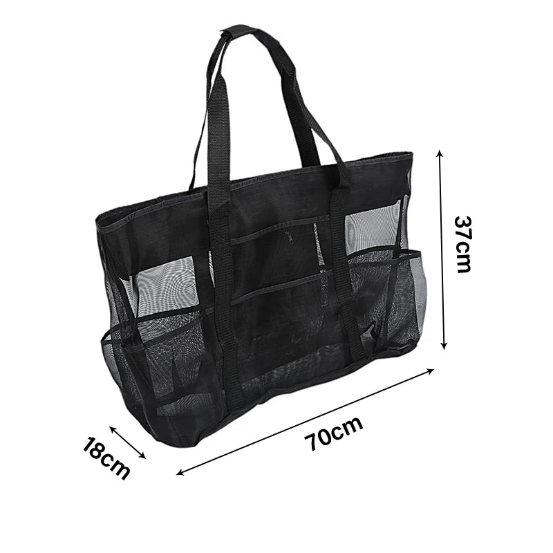 This 8-pocket summer beach bag is perfect for carrying all your essentials to the beach. Made of durable mesh material, it's waterproof and practical. The spacious design allows you to easily store beach towels, sunscreen, snacks, and more.