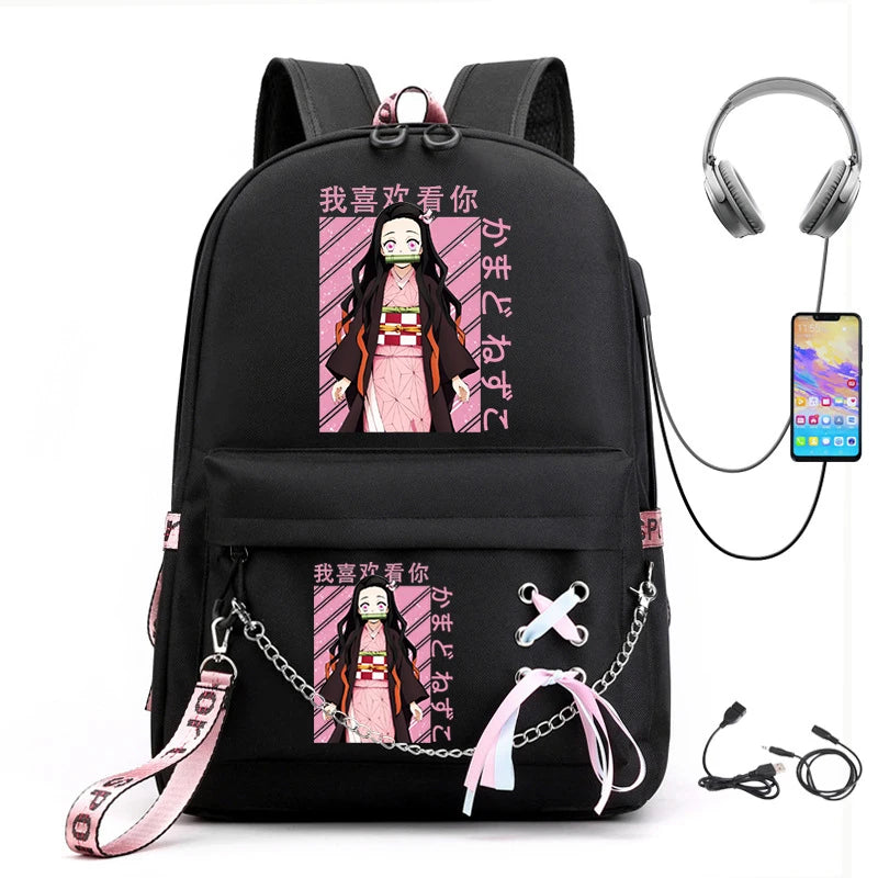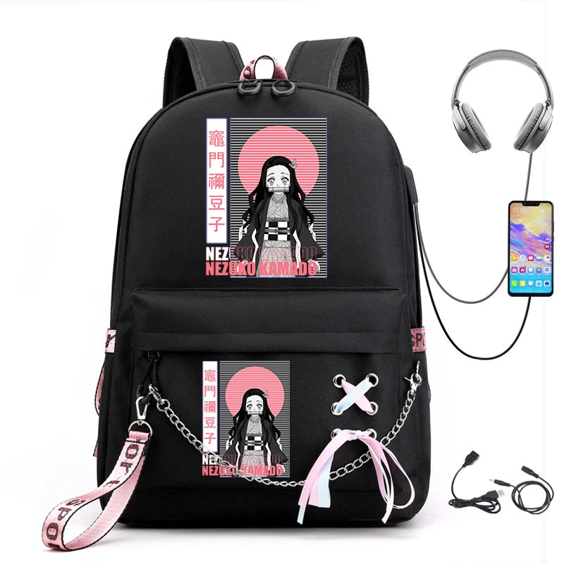 Large Capacity Demon Slayer Anime School Bag Harajuku Casual Backpack