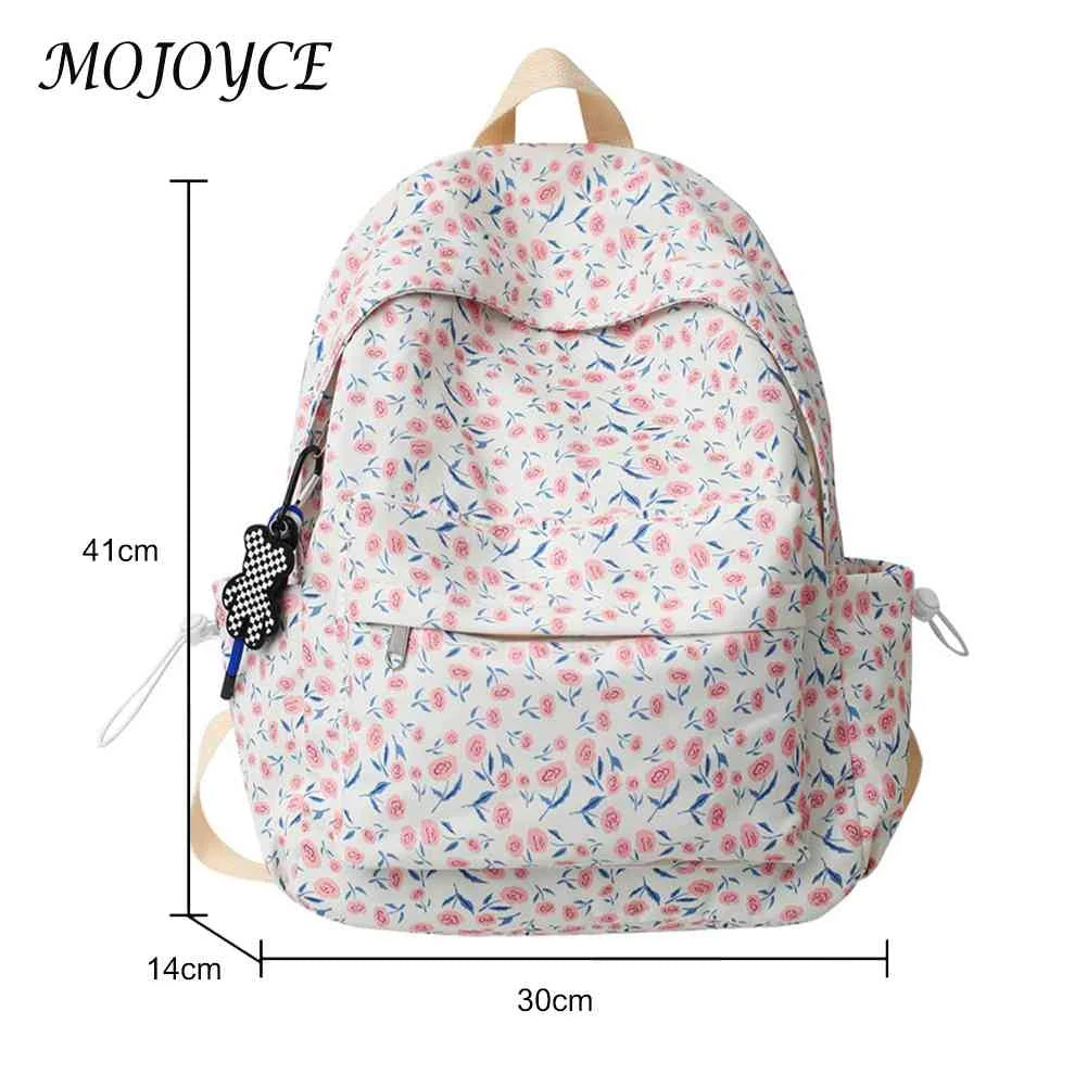 This stylish backpack features a floral print, ideal for school and travel. It offers ample space for books and essentials.