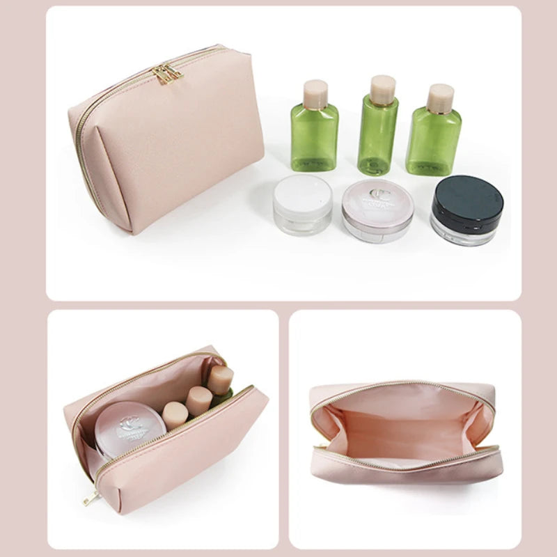 This cosmetic bag is made of high-quality PU leather, featuring a large capacity for storing all your makeup and toiletries. It is perfect for travel or daily use.