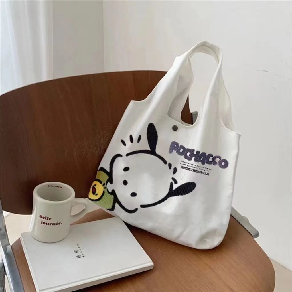 This versatile canvas bag is perfect for school, carrying books, or as a makeup bag. It's designed for junior high schoolgirls with a single shoulder strap for easy carrying.