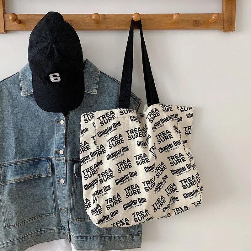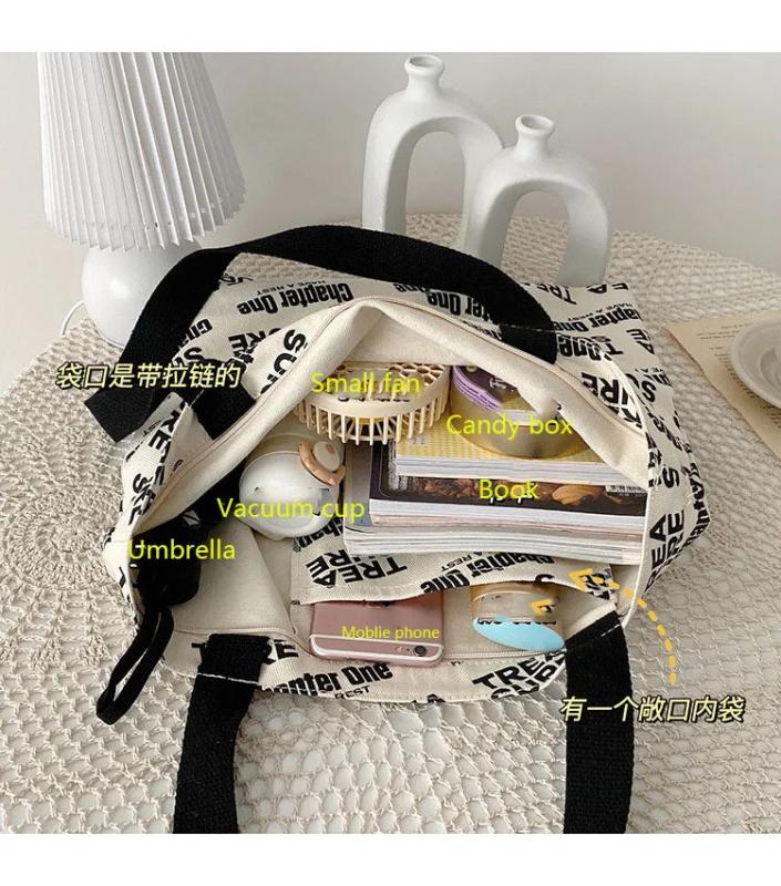 Large Capacity Shoulder Bag INS Letters Canvas Shopping