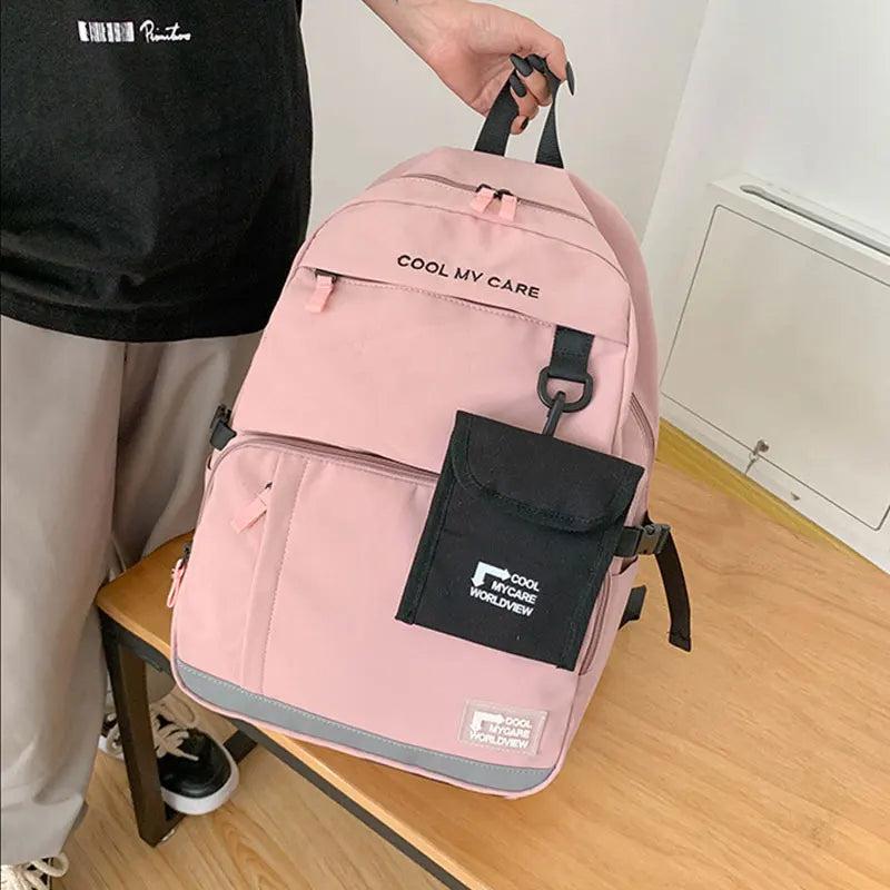 This backpack is perfect for students and travelers with its spacious design and durable materials. The contrast color adds a stylish touch.