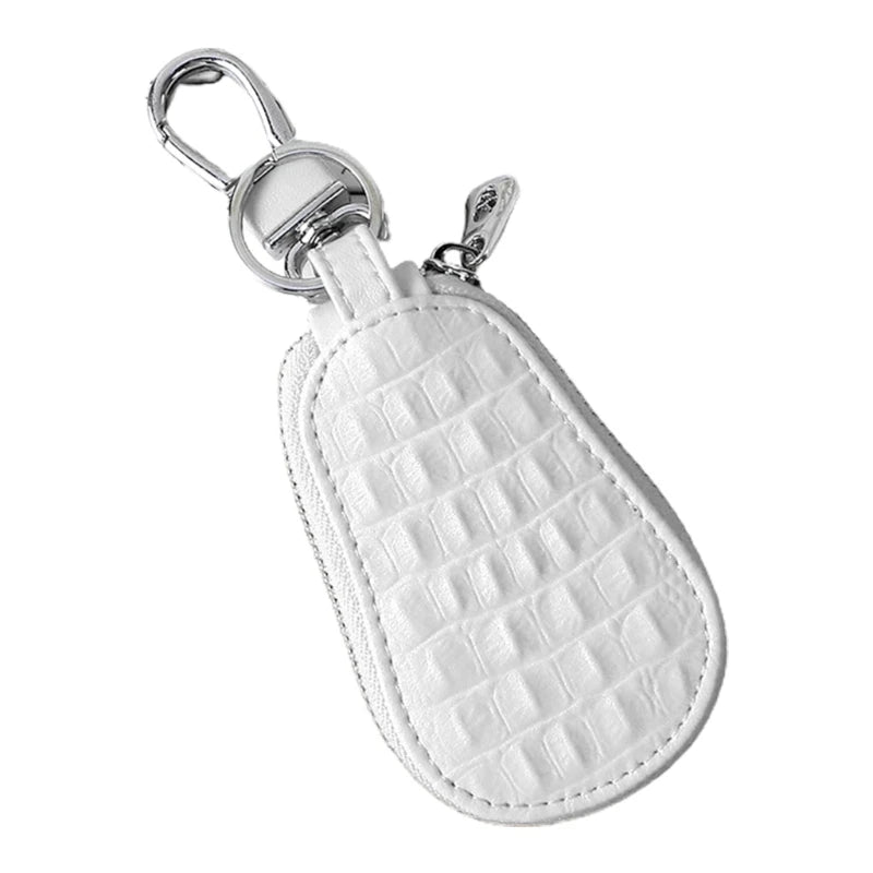 Keep your car key secure and stylish with this crocodile grain leather key holder. The mini bag design with metal hook, zipper closure, and auto remote functionality makes it perfect for carrying your keys on the go.