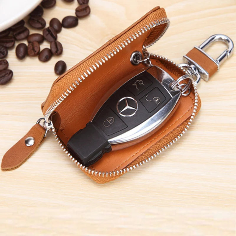 This Leather Car Key Holder is a stylish and practical way to keep your keys organized. It features a zipper closure, retro design, and can hold multiple keys securely.