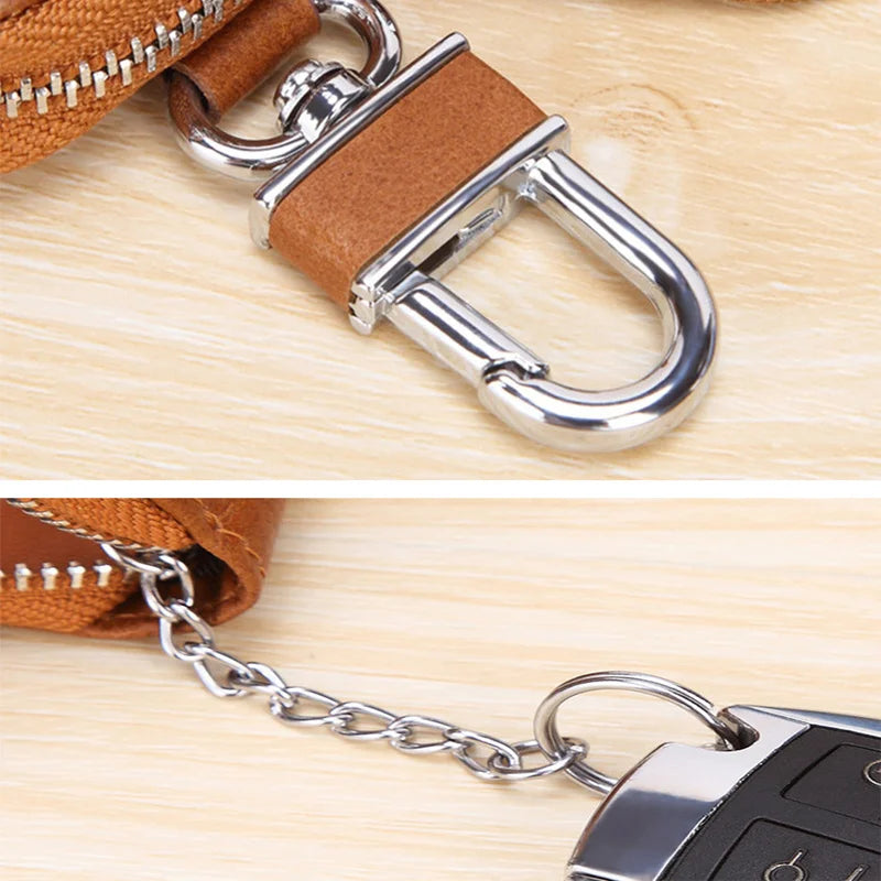 Leather Car Key Holder Key Organizer Zipper Retro Keychain Purse