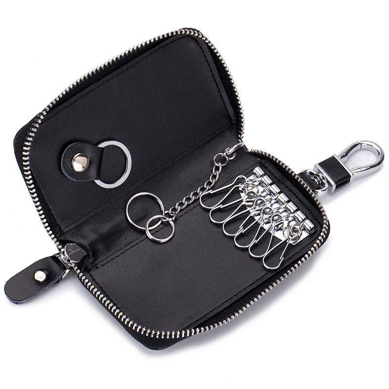 This multifunctional leather keychain wallet holder helps you keep your keys, cards, and coins organized in style.