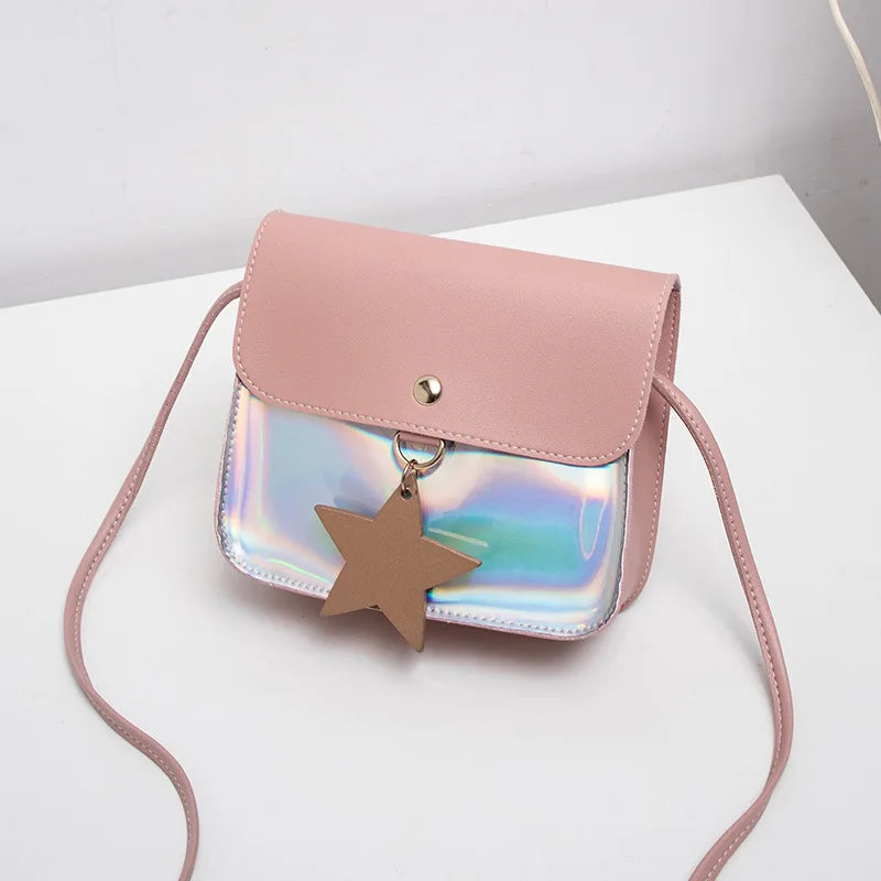 Leather Ladies Bags PU Shoulder Bag Laser Small Square Bag
