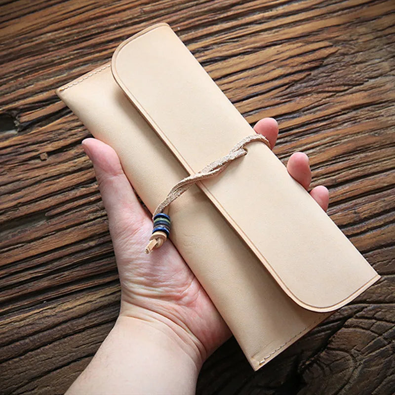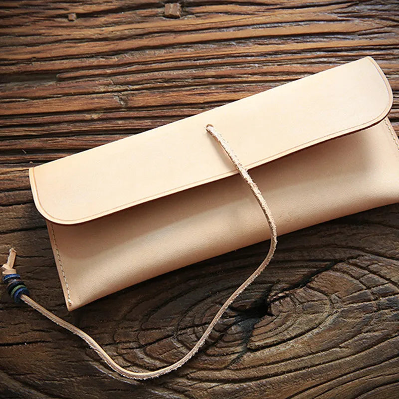 Leather Long Wallet Clutch Bag Fountain Pencil Bag