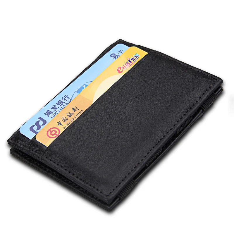 This leather mini magic wallet is ideal for holding cards and money in a compact and minimalist design. Perfect for those who prefer a small purse.